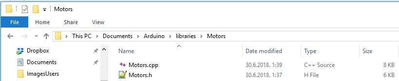That's it, this example is over. However, a curious user might ask himself what other functions of Motors library exist or what other parameters of the used functions (go, add) are possible. And yes, there are other functions and other parameters. In Arduino IDE they are not visible. You can use Visual Studio together with