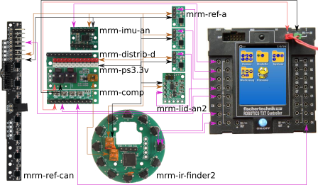 ML-R Distribution Pins 3x Passive (mrm-distrib-c). FischerTechnik ima problema s malim naponima na analognim ulazima. Tražite (ili sami promijenite) firmware ML-R senzora koji daje pomaknuti napon, kako bi se izbjeglo ovo područje.