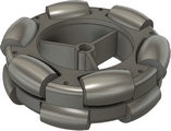 Došao je čas za ugradnju 7 senzora s nosačima u tijelo robota. Prednji dio robota (s kružnom udubinom za hvatanje lopte) je 0°. Kutevi u smjeru obrnutom od kazaljke na satu rastu. Pogledajte desnu stranu robota, neposredno do kotača na -45°. Kotač je na slici ugrađen (vi ga još ne ugrađujte). Desni lidar je odmah do tog kotača, na oko -70°, na samom obodu gornje ploče. Senzor linije je na donjoj ploči, na oko -110°. Preostala 2 (stražnji i lijevi) lidara i senzora linije nisu na slici, ali ugradite ih odmah. Svaki naredni je za točno 90° u smjeru kazaljke na satu od prethodnog iste vrste.