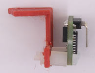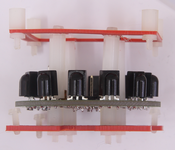 Pažljivo savinite nogice LEDa i tranzistora barijere, tako da se mogu gurniti u rupe štampanog nosača i da žice idu uz nosač. Treba ih prilično savinuti. Umite kliješta s vrlo uskim vrhom, primite nogice neposredno do LEDa (ili tranzistora) i savinite nogice koje vire s druge strane. Savijajte samo u dijelu gdje su nogice gole, jer inače možete oštetiti otpornike koji su skriveni ispod izolacije. Provucite 2 vezice kroz rupe nosača i stegnite ih.