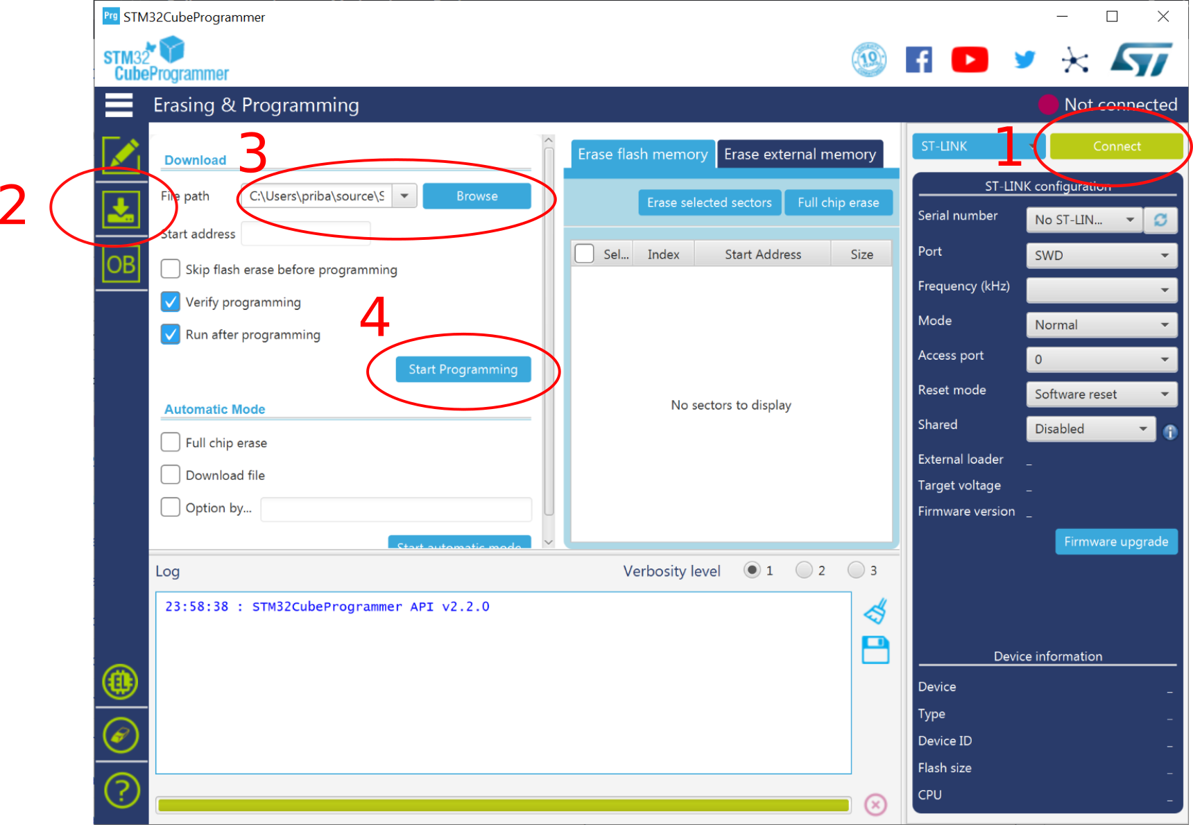 1. Download, install, and run ST's STM32CubeProgrammer software.