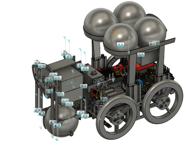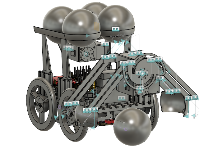 This model can be assembled with 2 different grippers. One of them enables it to carry 1 ball, the other 4. Pictures on this page show both variants.