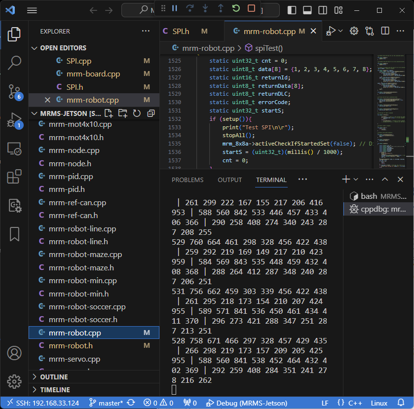 Robot se programira na gotovo identičan način kao i Arduino (ESP32) verzija MRMS sistema, unatoč tome što se sad radi u Linux operativnom sistemu.