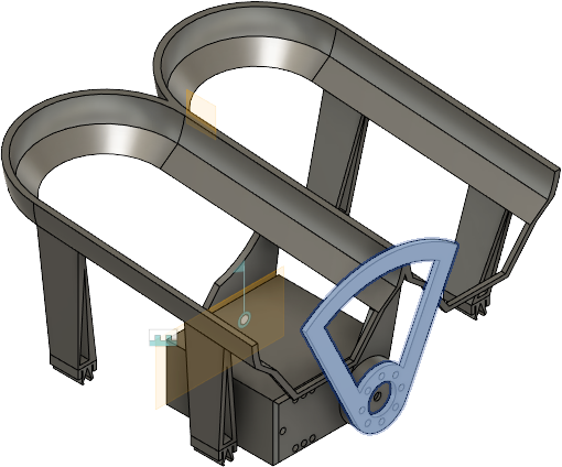 Attach to the servo element that will stop the balls. Use 2 servo-supplied screws.