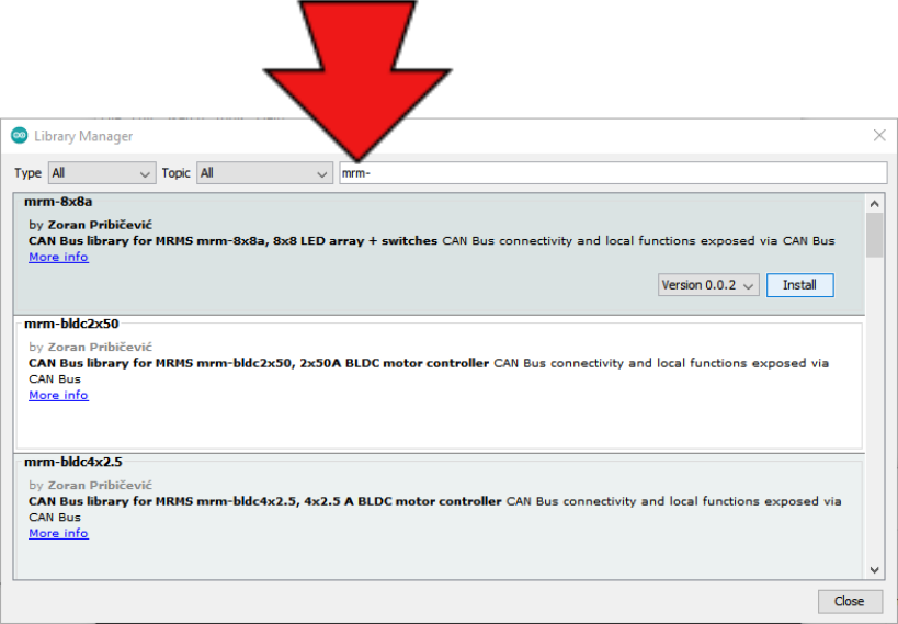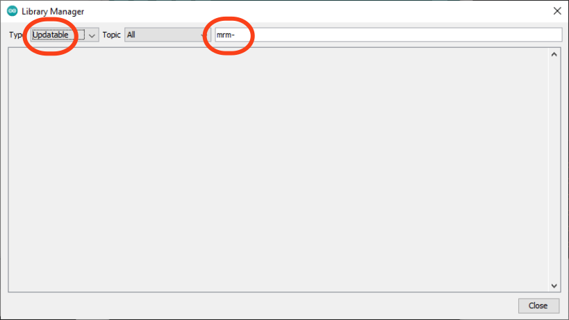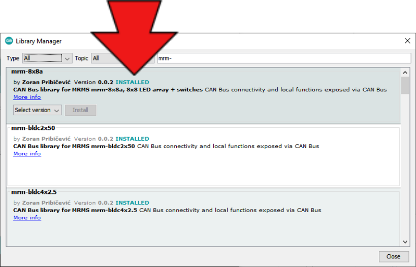 U tom slučaju idite na "Tools" - "Manage Libraries...", birajte Type "Updateable" i upišite kao filter "mrm-".