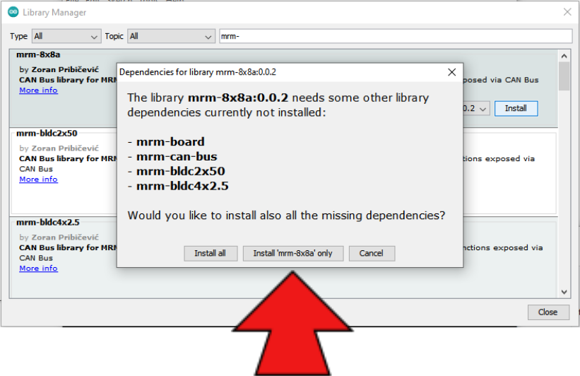 Ako ne, morat ćete instalirati jednu po jednu biblioteku. Odaberite srednju tipku, "Install 'mrm-8x8a' only".