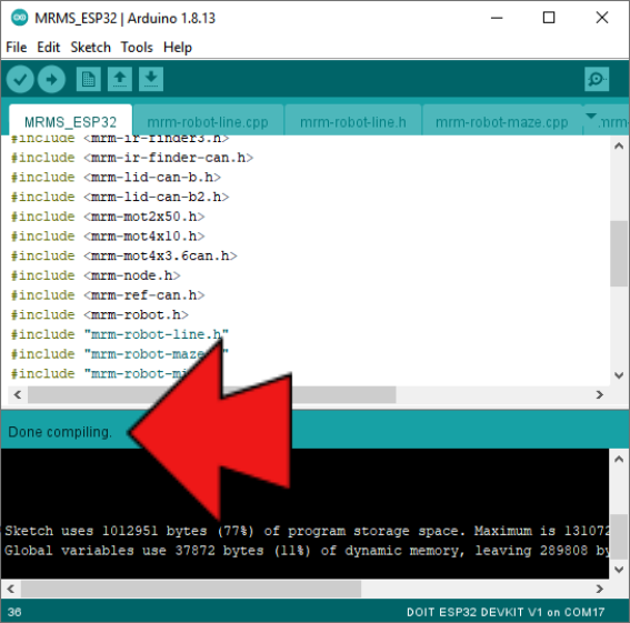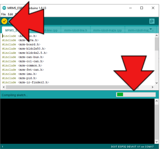Ako dobijete greške u mrm-servo.cpp datoteci, nastala je zato što je Espressif mijenjao format naredbe (https://docs.espressif.com/projects/arduino-esp32/en/latest/migration_guides/2.x_to_3.0.html?highlight=ledcattachpin). Otvorite ...Documents\Arduino\Libraries\mrm-servo\src\mrm-servo.cpp i promijenite "#define NEW_ESPRESSIF_VERSION 0" u "#define NEW_ESPRESSIF_VERSION 1". Upute su u samoj datoteci. Problem je što softver koji podržava ESP32 nije isti za PlatformIO (koristi novu verziju) i Arduino (koristi staru).