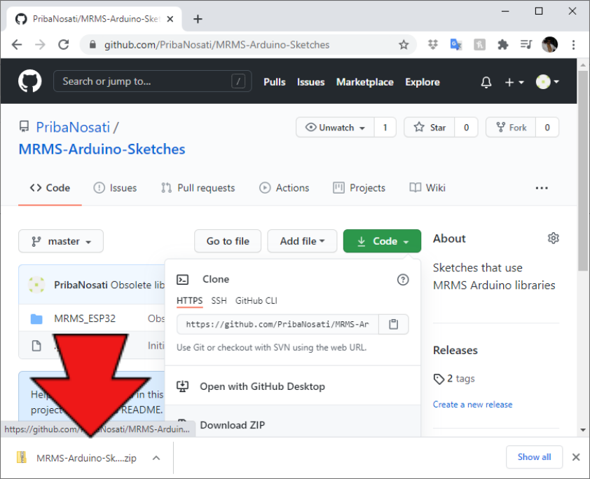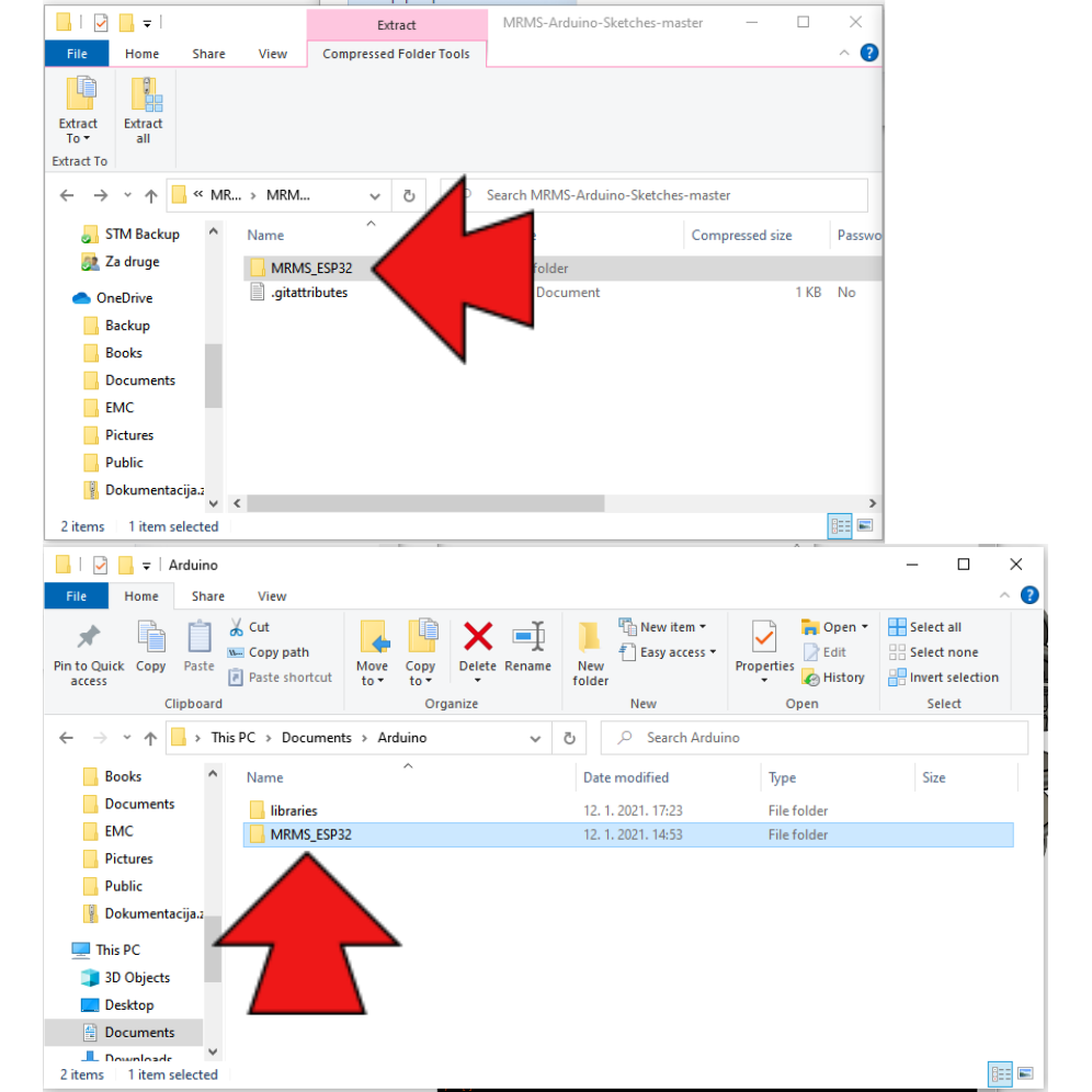 Pronađite u skinutoj datoteci "MRMS_ESP32" direktorij i kopirajte ga u "...Documents\Arduino" direktorij, npr. prevlačenjem mišem.