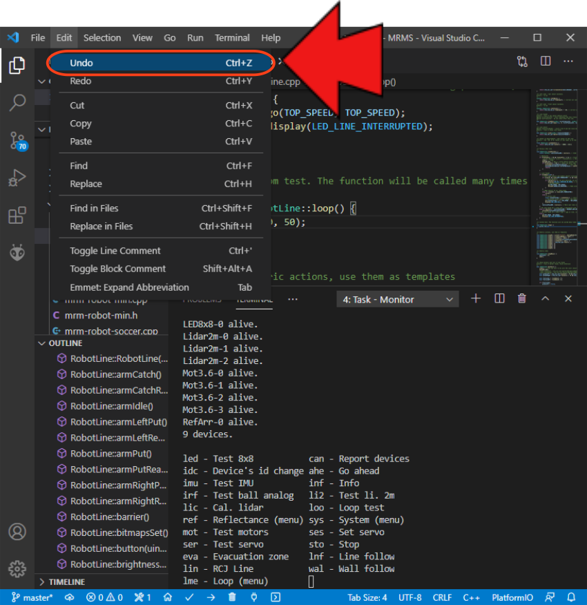 Ova će Vas procedura vratiti na zadnju verziju ispravnog koda. Sljedeća promjena je bila greška. Možete ju dobiti korištenjem "Ctrl" - "Y", naredbom "redo", suprotnom od "undo".