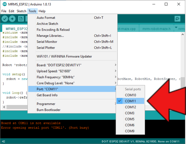Zapamtite broj koji slijedi iza "COM". To je broj USB porta na koji je priključen robot.