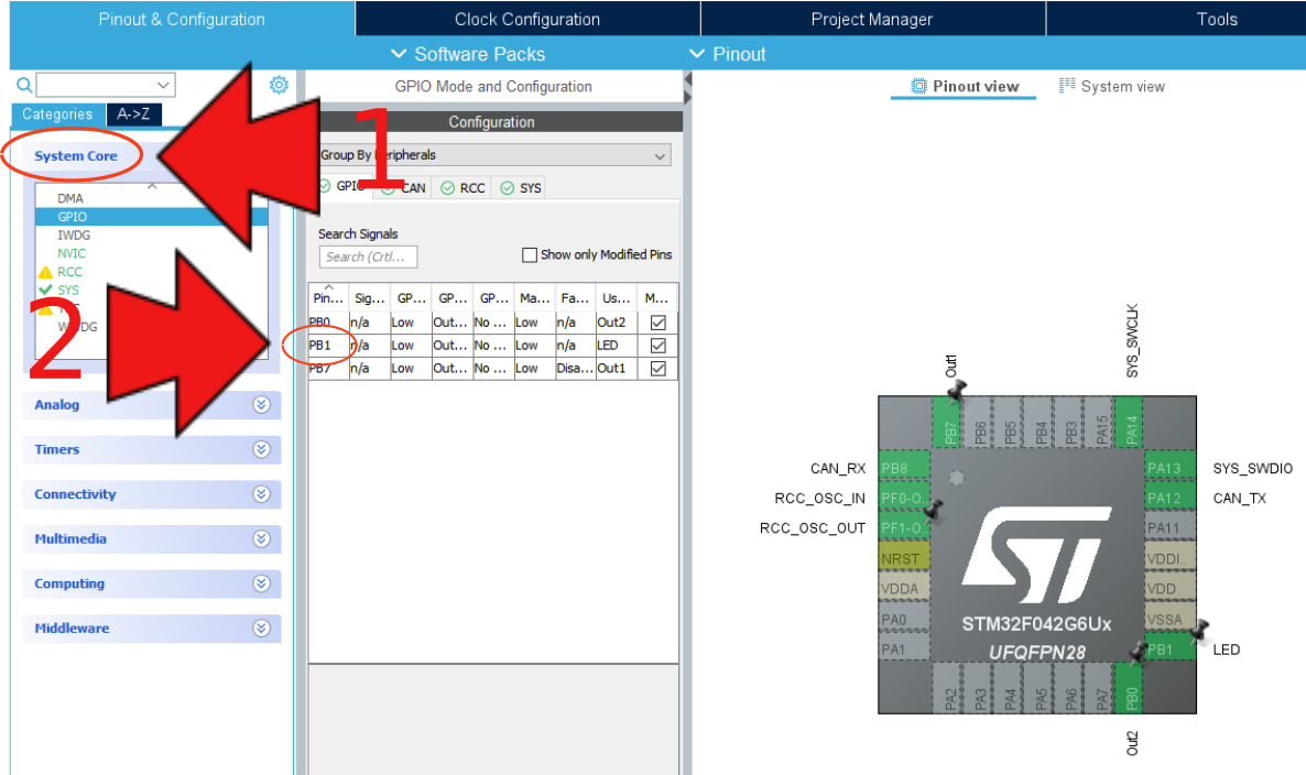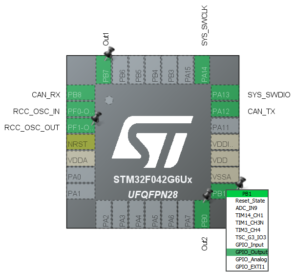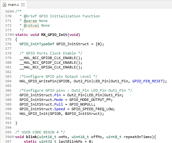 Na slici lijevo je funkcija "MX_GPIO_Init()", koja programira parametre pina i koja ima točno parametre koje smo postavili u "mrm-fet-can.ioc" ekranu.
