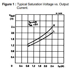 Bitan podatak je pad napona (Total Drop) za određenu struju odnosno napon zasićenja kod određene struje (Slika 3). Taj podatak nam ukazuje koliki pad napona možemo očekivati na elektroničkoj komponenti kada kroz nju teče određena struja, odnosno na motorima možemo očekivati toliko manji napon od napona izvora za faktor vođenja Ds=1.