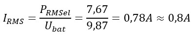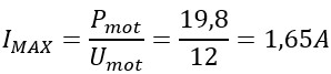 Iz dobivene efektivne snage izračunavamo efektivnu struju motora koja prolazi kroz H-most uz napone koje smo izračunali u primjeru „Izračuna napona motora“ za momente M3 i M4 jer su ti momenti vremenski najduže prisutni. Naponi koji se mijenjaju da bi ostvarili ubrzanje ili usporavanje nemaju toliki utjecaj na proračun efektivne struje jer kratkotrajni u odnosu na jednoliko gibanje.