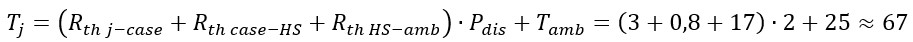 Potrebno je izračunati temperaturu silicija ukoliko je temperatura okoline 25°C i rasipa se izračunata snaga na H-mostu.