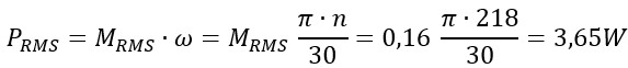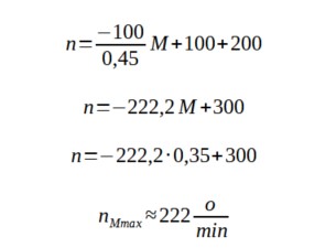 Maksimalni moment u našem primjeru je M1=0,35 Nm, a brzina vrtnje kod maksimalnog momenta iznosi n=218 o/min.