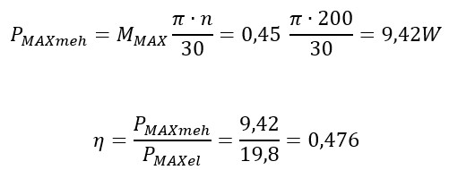 Da bi smo izračunali električnu snagu potrebno je iz tehničkih podataka motora izračunati faktor iskoristivosti pri maksimalnom opterećenju.