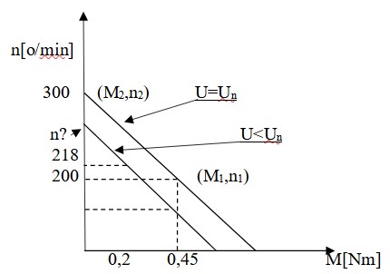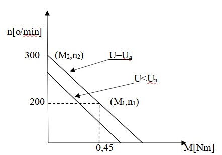 Točka (M1,n1) predstavlja brzinu vrtnje za maksimalni moment (Tablica 1. At Max. Torque), dok točka (M2, n2) predstavlja brzinu vrtnje za prazni hod (Tablica 1. No load) M2 =0.