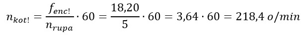Nadalje izračunavamo broj okretaja kotača koji moramo postići da bi se robot kretao zahtijevanom brzinom od 0,8m/s. Kada podijelite maksimalnu brzinu sa opsegom kotača dobijemo broj okretaja u sekundi da bi robot ostvario zadanu brzinu. U tehničkim specifikacijama motora i reduktora broj okretaja je izražen u okretajima u minuti. Pošto jedna minuta ima 60 sekundi tada kutnu brzinu pomnožimo sa brojem sekundi u minuti i dobivamo broj okretaja u minuti.
