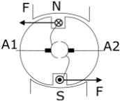 Armaturni namot se nalazi u magnetskom polju permanentnog magneta, a na vodič protjecan strujom u magnetskom polju djeluje sila. Smjer sile određuje se pravilom lijeve ruke,(u dlan lijeve ruke ulaze silnice magnetskog polja, ispruženi prsti pokazuju smjer struje, uzdignuti palac smjer sile).