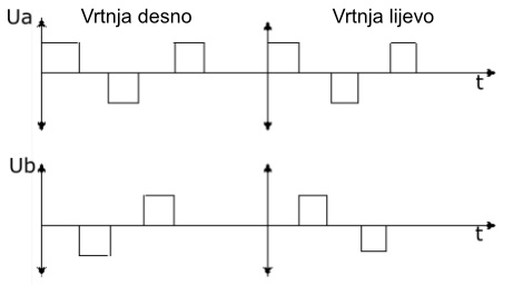 Iz početne pozicije rotor se polarizacijom druge faze rotira u smjeru kojem želimo slika 8.