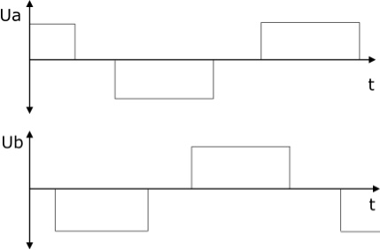 Zamislimo da istovremeno na prvu fazu motora dovodimo napon višeg nivoa u odnosu na drugu fazu slika 13.