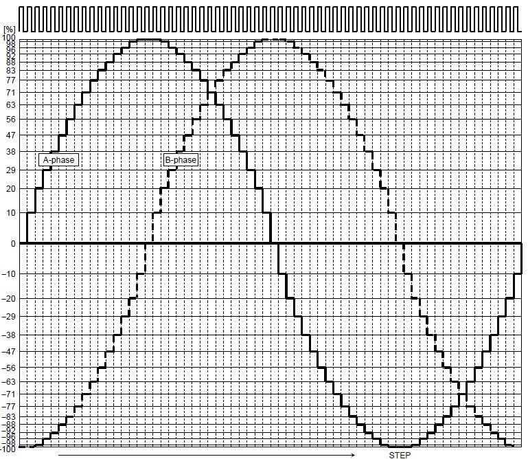 Za upravljanje mikrokoračnim načinom rada koriste se specijalizirani integrirani krugovi koji generiraju valni oblik napona na pojedinim fazama. Slika14. prikazuje mikrokoračno upravljanje s IC TB6560 Toshiba. Navedeni IC omogućuje promjenjivu gustoću mikrokoraka.