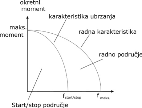 - Zaletna karakteristika odnosno karakteristika ubrzanja daje najveći moment tereta koji motor može svladati kod određene startne frekvencije. Područje ispod karakteristike naziva se „Start/stop područje.