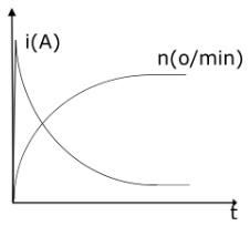 Prilikom pokretanja motora nazivnim naponom iz stanja mirovanja kroz armaturni namot potekne struja kratkog spoja koju nazivamo potezna struja motora slika 2. Takva struja stvara veliki potezni moment. Povećanjem brzine vrtnje rotora motora dolazi do induciranja napona u armaturnom namotu (kao u generatorskom načinu rada). Inducirani napon uslijed vrtnje motora i dovedeni napon na stezaljke motora su međusobno suprotnog polariteta te se poništavaju. Zbog toga na armaturnom namotu vlada razlika između dovedenog i induciranog napona, što dovodi do smanjenja struje kroz armaturni namot, te smanjenja momenta motora. Konačna brzina vrtnje motora ovisi o mehaničkom opterećenju motora i dovedenom naponu na stezaljke motora, dok vrijeme stabilizacije ovisi o vremenskoj konstanti sustava s motorom.