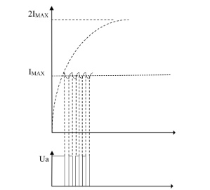 Promjena struje izgleda kao na slici 19. Vrijeme od 3τ do 5τ je potrebno da struja dosegne od 95 do 99% maksimalne vrijednosti. Ukoliko upravljački impuls doveden na motor traje kraće od (3-5)τ struja ne postiže maksimalnu vrijednost odnosno ne razvija se maksimalni moment te se rotor motora ne može pokrenuti ukoliko je mehanički maksimalno opterećen. Iz razmatranja proizlazi da startna frekvencija koračnog motora je niže od radne frekvencije.