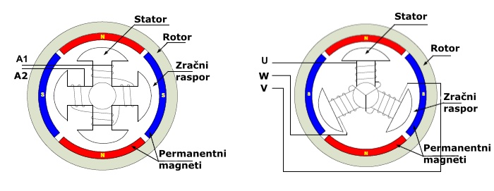 U magnetskom polju permanentnog magneta nalazi se rotor sa svojim armaturnim namotom.