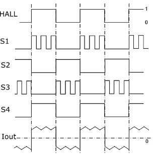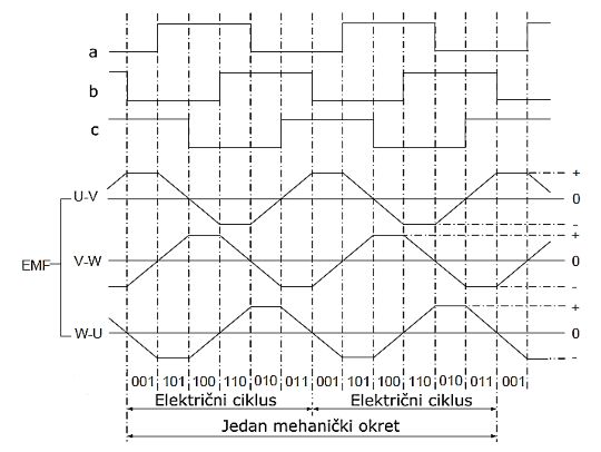 Vremenski dijagram vođenja prekidačkih elemenata i izlaza Hall senzora