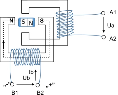 Permanentni magnet stvara magnatski tok indukcije B koji se zatvara od N pola preko zračnog raspora-rotora sa armaturmim namotom - zračnog raspora na S pol magneta, pa preko jarma na N pol magneta slika1.