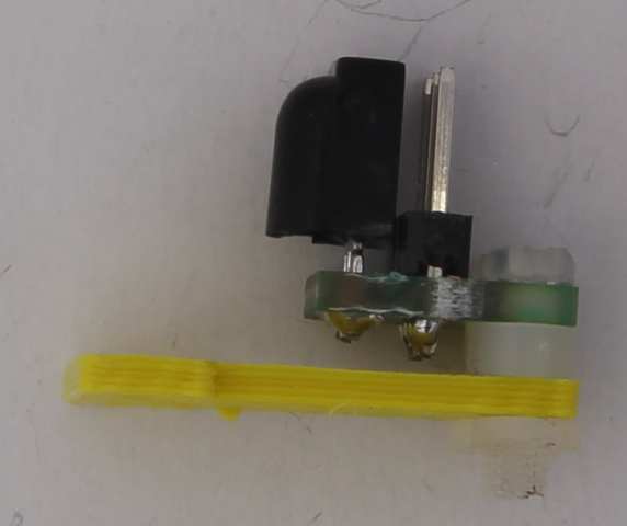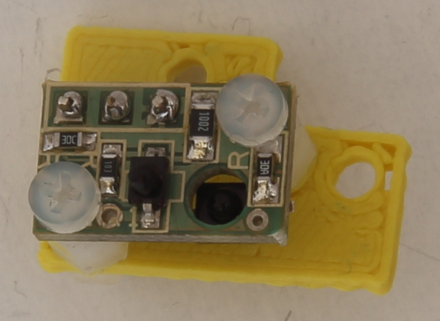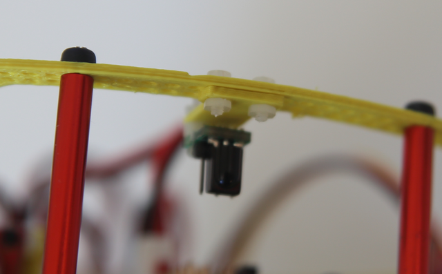 Pričvrstite ih za gornju ploču s donje strane. Na slici nema ograničavača vidnog polja senzora. Oni se moraju postaviti jer inače senzor vidi loptu gotovo bilo gdje da se nalazila.