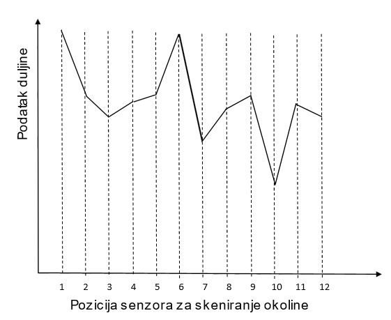 - Infracrveni (IR) senzori rade na principu emitiranja infracrvenih impulsa i detektiranja reflektiranog signala od objekta u okolini robota.