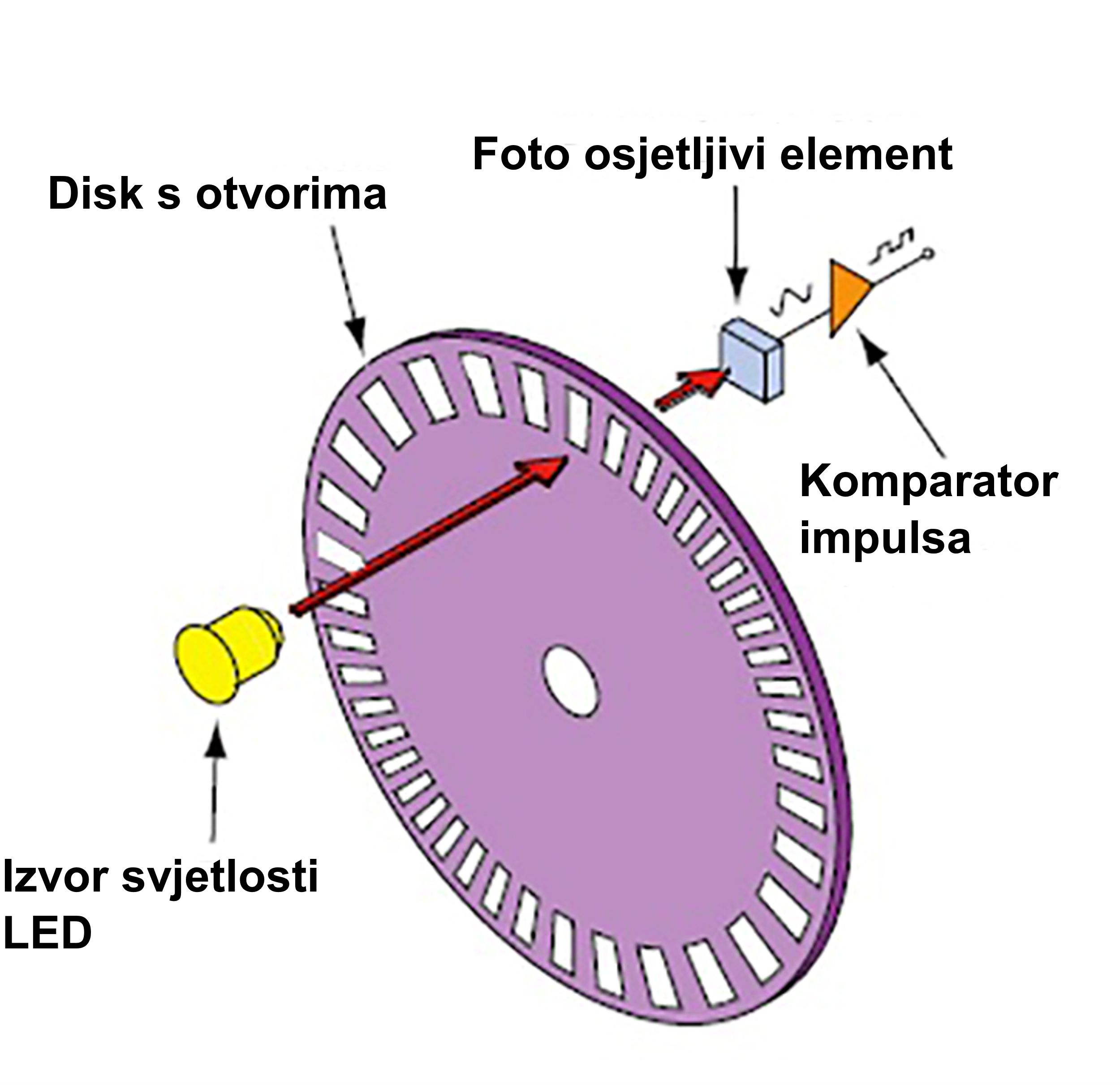 Mjeri brzinu vrtnje osovine, ali ne može odrediti smjer vrtnje, a time niti poziciju slika.