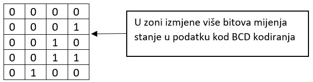 Prilikom rotiranja osovine izmjenjuju se podaci na fotoosjetljivom elementu. Kada bi disk s kodom bio izveden u BCD kodu tada bi se u zoni izmjene podatka mijenjalo više bitova u podatku slika. Osim toga u zoni izmjene podatka nije moguća istovremena izmjena svih bitova u novi podatak radi nesavršenosti diska i fotoosjetljivog elementa. Sklopovi koji obrađuju podatke rade na velikom brzinama te BCD način kodiranja u zoni izmjene podatka dovodi do krivog očitanja u trenutku izmjene podatka.