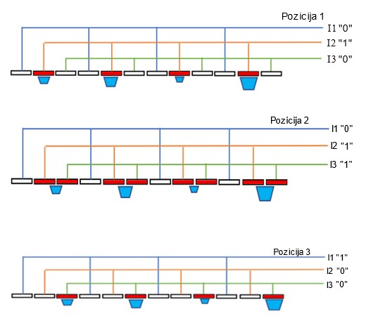 Ako se elektroda I2 stavi u nisko stanje „0“, naboj će se u potpunosti prenijeti ispod elektrode I3 (pozicija 3.).