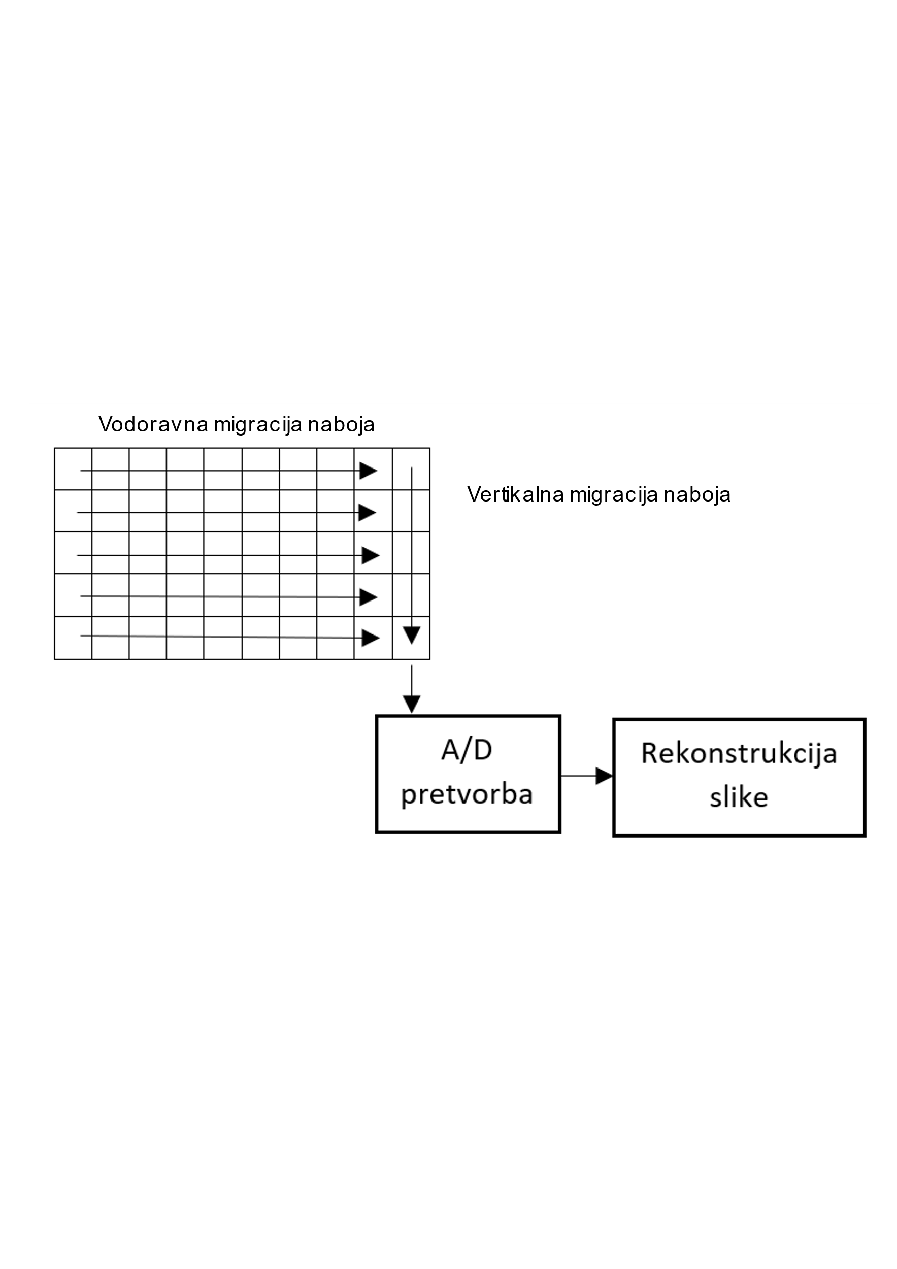 Izmjenom stanja na elektrodama prikupljani naboji migriraju do vertikalne migracije koja odvodi naboj na A/D pretvorbu i program za rekonstrukciju slike. Sljedećom izmjenom vodoravne migracije naboj je spreman za transport vertikalnom migracijom slika3.