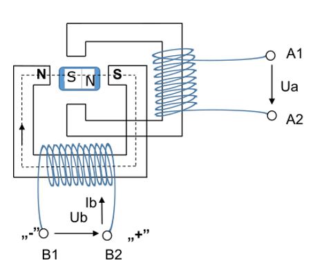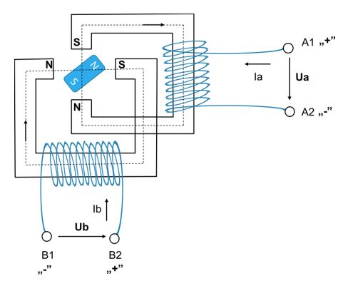 Ukoliko na priključnicu A1 dovedemo pozitivni pol napona, a na priključnicu A2 negativni tada kroz namot protekne struja Ia koja stvori magnetsko tok smjera kao na slici 6. Stvoreni magnetski tok zakrene rotor tako da se suprotni polovi magneta privuku.