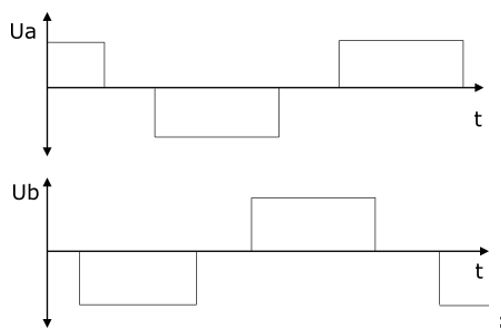 Zamislimo da istovremeno na prvu fazu motora dovodimo napon višeg nivoa u odnosu na drugu fazu slika 13.