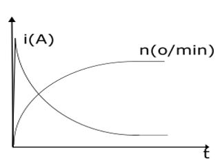 Prilikom pokretanja motora nazivnim naponom iz stanja mirovanja kroz armaturni namot potekne struja kratkog spoja koju nazivamo potezna struja motora slika 2. Takva struja stvara veliki potezni moment. Povećanjem brzine vrtnje rotora motora dolazi do induciranja napona u armaturnom namotu (kao u generatorskom načinu rada). Inducirani napon uslijed vrtnje motora i dovedeni napon na stezaljke motora su međusobno suprotnog polariteta te se poništavaju. Zbog toga na armaturnom namotu vlada razlika između dovedenog i induciranog napona, što dovodi do smanjenja struje kroz armaturni namot, te smanjenja momenta motora. Konačna brzina vrtnje motora ovisi o mehaničkom opterećenju motora i dovedenom naponu na stezaljke motora, dok vrijeme stabilizacije ovisi o vremenskoj konstanti sustava s motorom.