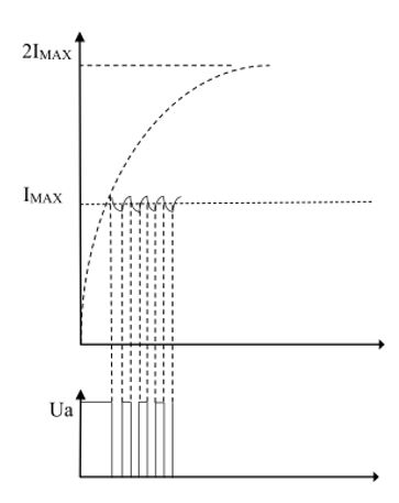 Da bi smo pokrenuli motor pri višoj frekvenciji, kraćem trajanju impulsa, tada se motor upravljamo s višim naponom, na primjer dvostruko višim od nominalnog. Tada će se i maksimalna struja udvostručiti, odnosno u istom vremenskom intervalu biti će dvostruko viša Slika 20. Na taj način možemo i pri višim frekvencijama upravljanja postići maksimalni moment.