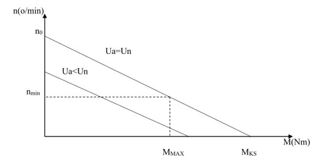 Vanjske karakteristike motora s permanentnim magnetima uz nominalni i smanjeni napon napajanja: