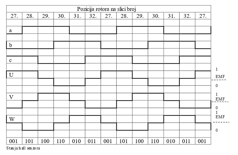 Vremenski dijagram vođenja prekidačkih elemenata i izlaza Hall senzora
