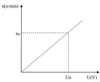 Idealna karakteristika ovisnosti napona o brzini motora u praznom hodu: