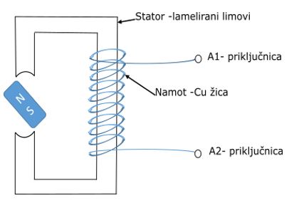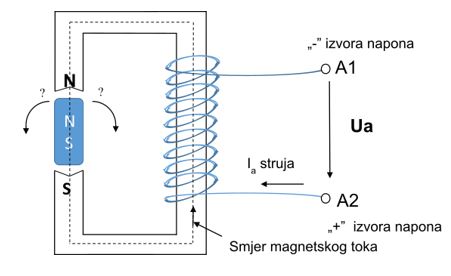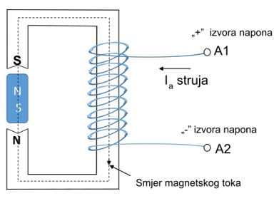 Dovedeni napon na priključke A1 i A2 kroz armaturni (rotorski) namot protjera struju slika1.