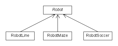 Pogledajmo sad primjer našeg koda. Imamo baznu klasu "Robot", iz koje su izvedene klase "RobotLine", "RobotMaze" i "RobotSoccer".