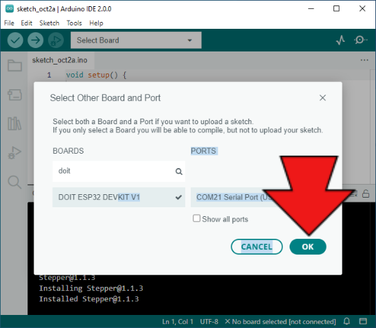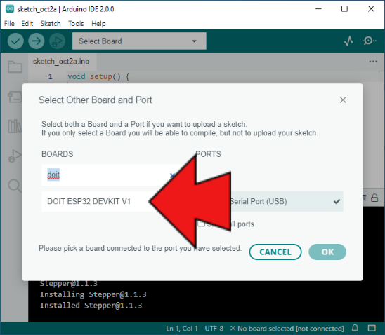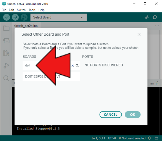 Ako već niste u prethodnom koraku, ovdje kliknite na "DOIT ESP32 DEVKIT V1".