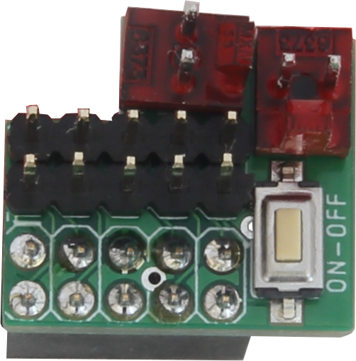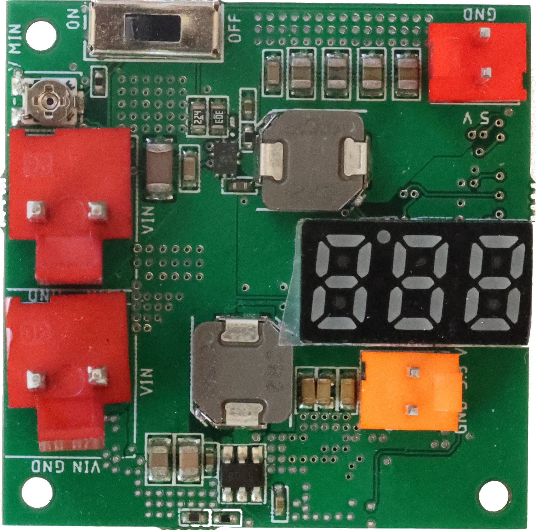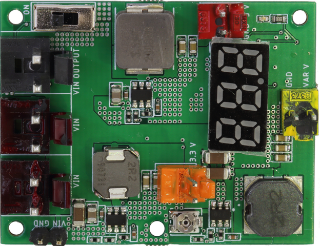 3 visokoučinkovita pretvarača napona baterije (6.5 - 16 V) u 3.3 V (3 A), 5 V (5 A) i varijabilni napon (0.76 - 7 V, 3 A). Elektronički prekidač. Zaštita od obrnutog ulaznog napona. Voltmetar.