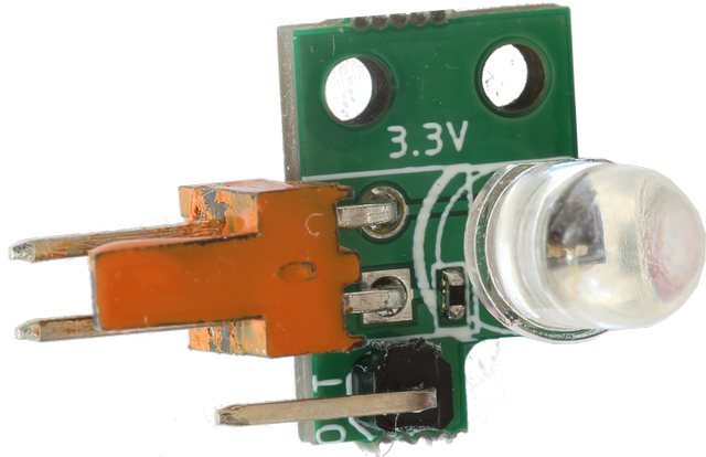 Izvor zelenog svjetla za svjetlosnu barijeru - detektira prekid svjetlosti. 3.3 V napajanje putem Molex KK254 konektora. Za cijelu barijeru je potreban još prijemnik.